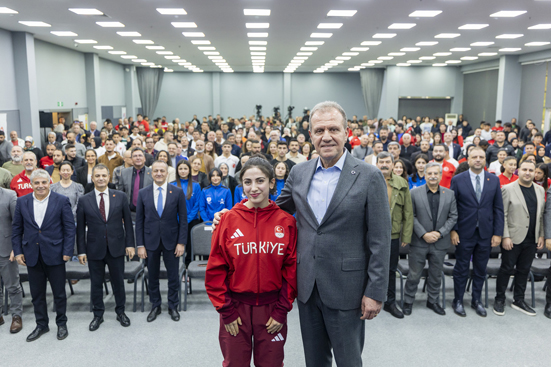 Mersin Büyükşehir Belediye Başkanı olarak Mersin’den başarılı sporcuların çıkmasından mutluluk ve gurur duyduğunu ifade eden Seçer, “Hem Mersin’imizin hem Türkiye’mizin dünyada tanıtımına katkı sunuyor hem de bir sporcu olarak sadece ülke barışına değil, dünya barışına katkı sunup, gençlere çok iyi örnek oluyorsunuz” dedi.