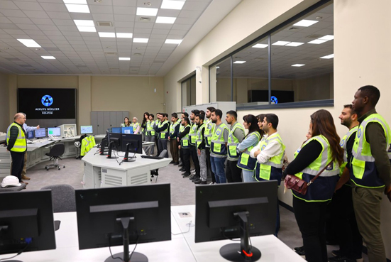 Eğitmenler öğrencilere, kontrol panelinin birebir kopyası olan tam ölçekli simülatörün yapısı ve nükleer güç santrali işletme personelinin çok aşamalı eğitim süreci hakkında bilgi verdi. Ziyaretin son bölümünde öğrenciler, deniz seviyesinden 200 metre yükseklikteki seyir terasından Akkuyu NGS sahasının büyüklüğünü gözlemlediler.