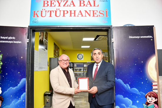 Kütüphanenin açılışına destek veren Fatma Bal ve Taşucu Eğitim ve Doğal hayatı Koruma Vakfı Başkanı Mustafa Devrim Eyce’ye birer plaket takdim edildi.