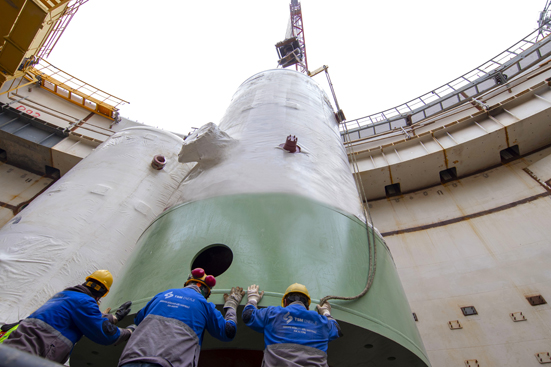 Santralin 2. Güç Ünitesi’ne ait reaktör binasında, 8 adet pasif kor su basma sistemi tankı, tasarım konumuna yerleştirildi. Paslanmaz çelikten üretilmiş kalın çeperli bir basınç kabı olan ekipmana ait 8 tankın montajı toplam 9 gün sürdü.
