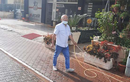 Hava sıcak olunca biraz serinlemek ve serinletmek istemiş ortamı. Eline hortumu alınca da bir baştan bir başa sokağı yıkamış maşallah!