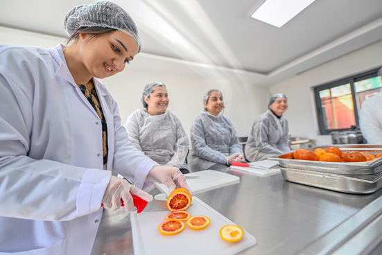 Mersin’in yerel ürünlerini tanıtmak, kırsal kalkınmayı desteklemek ve üreticilere katkıda bulunmak amacıyla hayata geçirilen projede, eğitimlerin yapıldığı alanda iş güvenliği ve sağlığı hakkında bilgiler de veriliyor. Katılımcılara üretim sürecinde karşılaşılabilecek riskler, güvenli çalışma yöntemleri ve koruyucu ekipman kullanımı hakkında detaylı bilgilendirme yapılıyor. Mersin’in yerel lezzetlerini, katma değeri yüksek ürünler haline getirmeyi amaçlayan eğitimlerde, tüketicilerin güvenli gıdaya ulaşması da hedefleniyor.