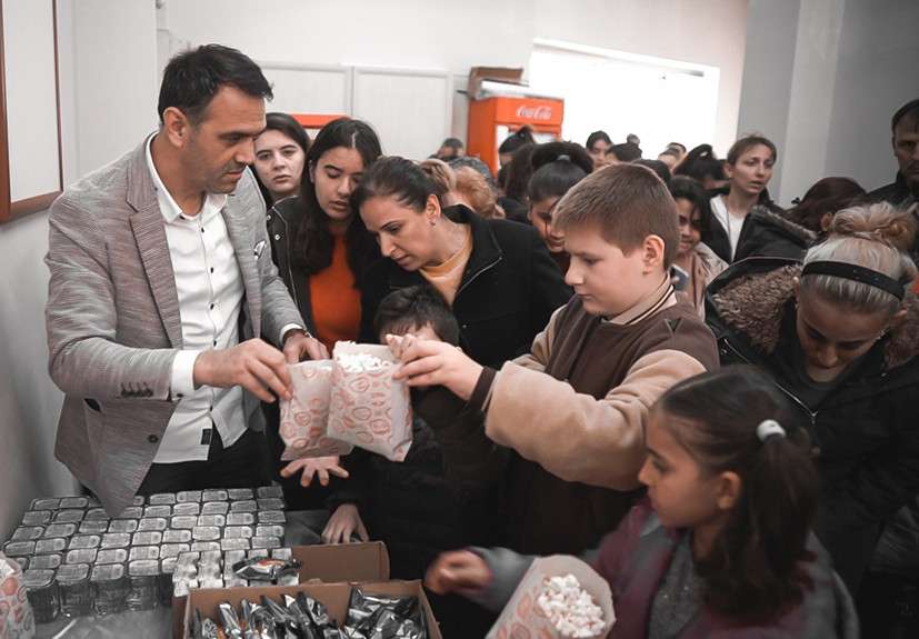 Başkan Altunok belediyeye ait sinema salonuna gelen depremzede çocukları ve onlara refakat eden aileleri, Milli Eğitim Müdürü Mustafa Sezgin ile birlikte karşıladı.