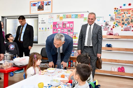Okul öncesi eğitim sosyal ve duygusal gelişimi destekleyerek, yetişkinlik döneminde de kişilerin daha üretici ve verimli olmalarını ve sahip oldukları potansiyeli tam olarak kullanmalarını sağlar. Bu nedenle anasınıflarımızın varlığı ve burada çocuklarımıza verilen eğitimler çok önemlidir” dedi.