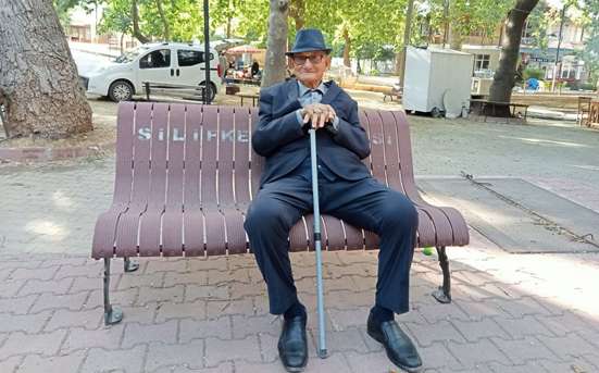 Bir gün önceden sözleştiğimiz üzere, Gökbelen Yaylasının çarşısında, belediyenin koyduğu bankta heyecanla beni bekliyor. Yine gayet şık ve bakımlı... Şapkası ve bastonu da takım elbisesine uygun.