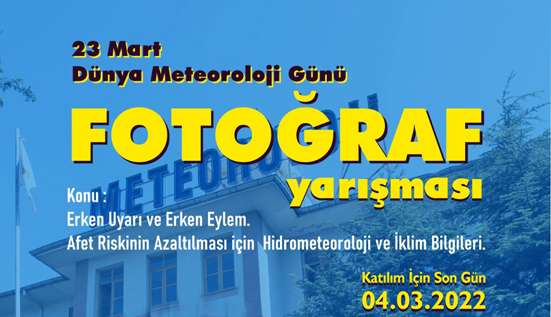 Bu çerçevede 23 Mart Dünya Meteoroloji Gününün çeşitli etkinliklerle kutlanması planlanmıştır. Bu kapsamda "Erken Uyarı ve Erken Eylem. Afet Riskinin Azaltılması için Hidrometeoroloji ve İklim Bilgileri" konulu bir fotoğraf yarışması düzenlenecektir. Dereceye giren ve seçilen fotoğraflar 23 Mart 2022 günü sergilenecektir.