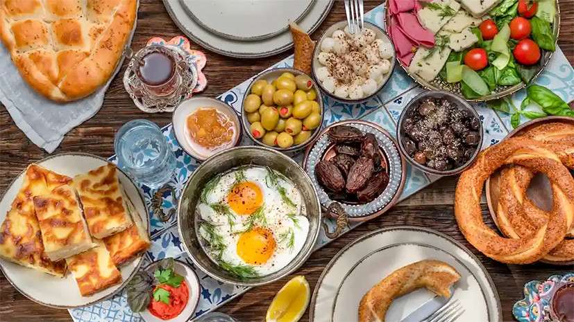 Ramazan ayında oruç tutarken beslenmeye daha çok özen gösterilmeli, yemekler ağır olmamalı, az yağlı/yağda kızartılmadan yapılmış yiyecekler seçilmeli, iftarla birlikte az ve sık yemeye dikkat edilmelidir. Gün boyunca aç kalınacağı için yavaş sindirilen, kana geçiş hızı düşük (düşük glisemik indeksli) olan esmer tahıl ürünleri, sebze, salata ve kaliteli protein kaynakları tercih edilmelidir.