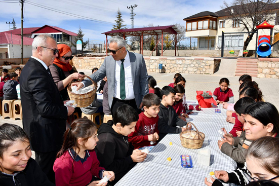 “Maarifin Kalbinde Ramazan” Etkinliğine Milli Eğitim Şube Müdürü Bülent Akşahin ile birlikte katılan Milli Eğitim Müdürü Fevzi Kültiğin Eroğlu, etkinlik boyunca öğrencilerle yakından ilgilenerek öğrenci velileri tarafından hazırlanan kurabiyeleri öğrencilere dağıttı.