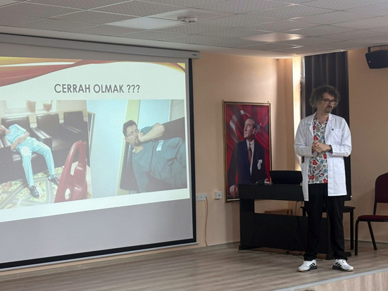 Dr. Örnek, doktor olabilmek için öncelikle doktorluğun sevilmesi ve çok çalışılması gerektiğinin belirterek, özetle şu bilgileri paylaştı: “Hangi mesleği seçmek isterseniz isteyin öncelikle seçecek olduğunuz mesleği sevmeli, benimsemeli, yapabileceğinize inanmalısınız.