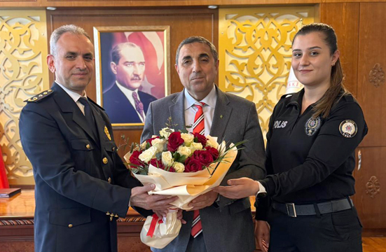 Türk Polis Teşkilatının 181. Kuruluş yıldönümü dolayısı ile Silifke Emniyet müdürü Fuat Panavur ve beraberindeki heyet, Silifke Kaymakamı Abdullah Aslaner’i makamında ziyaret ederek, günün anısına çiçek takdim ettiler.