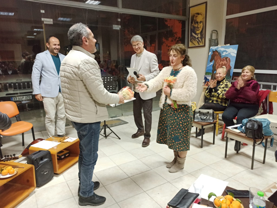 Gecenin sonunda saz sanatçıları Hasan Gürpınar ile Kamil Cura’ya “Gökçe Grubu” adına İlhame Öztürk tarafından teşekkür edilerek birer demet nergis sunulurken, ressam, resim öğretmeni Hasan Uzun da program esnasında çizdiği kara kalem resimlerini hediye etti.