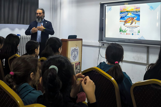Seyfettin Tatoğlu Ortaokulu’nda öğrencilerin, bilimsel farkındalıklarını artırmaya yönelik anlamlı bir etkinlik yapıldı. Etkinliğe katılan Prof. Dr. Deniz Ayas (Mersin Üniversitesi Su Ürünleri Fakültesi Dekanı) öğrenciler ile bir araya gelerek deniz altı ekosistemi üzerine sunum gerçekleştirdi.
