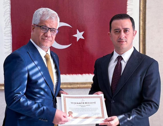 Mersin İl Sağlık Müdürü Uzm. Dr. Mustafa Ekici; Uluslararası Sağlık Turizmi Yetki Belgesi almaya hak kazanan Silifke Ağız ve Diş Sağlığı Merkezi’nin bu başarısını taçlandırdı. Ağız ve Diş Sağlığı Merkezi Başhekim Dt. Mehmet Can Akkaya ve İdari ve Mali İşler Müdürü Alihan Cırık’ı makamında kabul etti. İl Müdürü Ekici başarıları nedeni ile Akkaya ve Cırık’a teşekkür belgesi verdi.