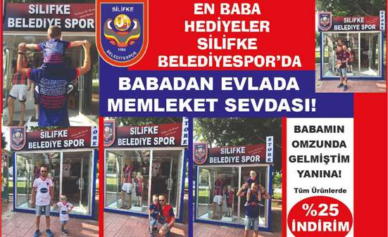 Silifke Belediyespor yönetimi, Silifkesporlu babaları ve çocukları düşünerek, 9-20 Haziran 2021 tarihleri arasında Anıt meydanında bulunan Silifke Belediyespor Store Mağazasında Babalar Gününe özel tüm ürünlerde %25 indirim kampanyası başlattı.