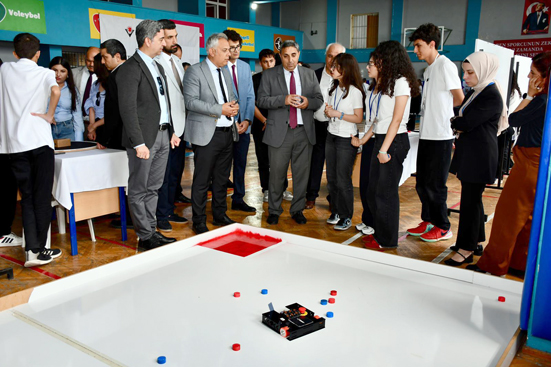 Öğrenciler bilim fuarında; sağlıklı beslenme, dijital dönüşüm, enerji verimliliği, robotik, kültürel miras gibi tematik konularda projeler hazırlayarak, hazırlanan stantlarda çalışmalarını sergilediler