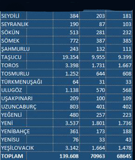 Nüfusu 100 kişinin altında kalan mahalleler ise şunlar: