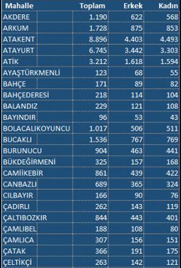 Yine nüfus yoğunluğu ile dikkat çeken iki eski belde olan Atakent: 8.896, Atayurt: 6.745 olarak sayımı yapılan mahalleler oldular.
