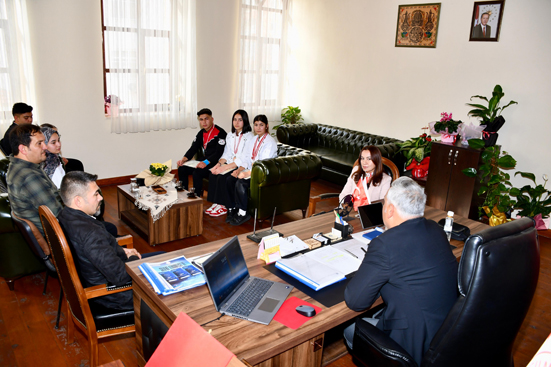 Antalya’daki yarışmanın ardından kazanılan büyük başarı ile birlikte Silifke’ye dönen Taşucu Turizm Mesleki ve Teknik Lisesi öğrencileri okul idarecileri ile birlikte Silifke Millî Eğitim Müdürü Fevzi Kültiğin Eroğlu’nu makamında ziyaret ettiler.