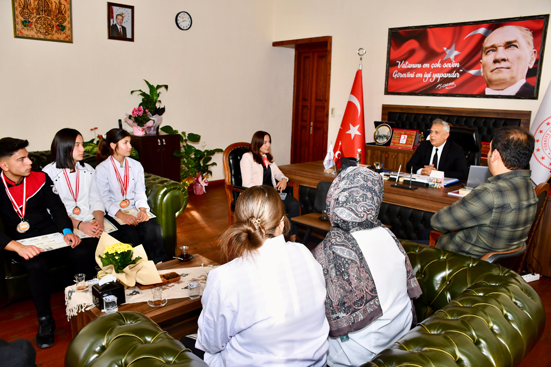 Öğrenciler, yarışma süreci ve elde edilen dereceler hakkında Müdür Eroğlu’nu bilgilendirdiler. Alınan başarıyı değerlendiren Müdür Eroğlu, öğrencileri ve öğretmenlerini tebrik ederek, “42 ülke ve 81 ilden katılan toplam 1500 yarışmacı arasından toplamda 1 altın, 2 gümüş ve 3 bronz madalya kazanan öğrencilerimizi canı gönülden kutluyor, bu başarıda emekleri olan öğretmenlerimizi ve okul idaresini de tebrik ediyorum.