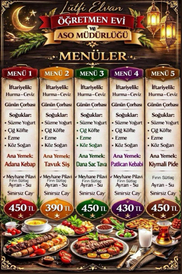 Taşucu Lütfi Elvan Öğretmenevi, ramazan ayı boyunca 5 çeşit iftar menüsü ile halkın yanında, uygun fiyat ve kaliteli ürünlerle hizmetlerini sürdürüyor.