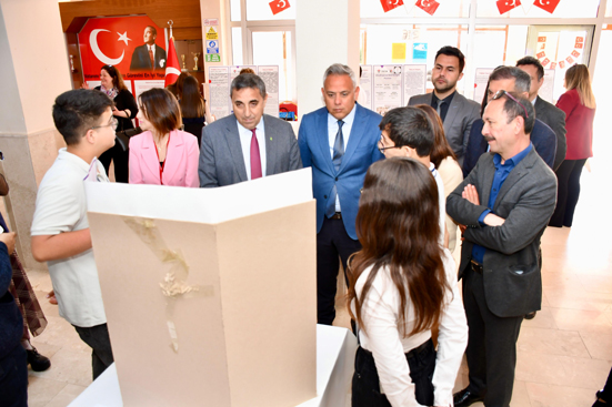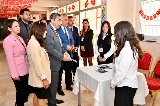 Protokol üyelerinin tek tek gezerek bilgi aldığı projelerin tanıtımını yapan öğrenciler, gösterilen ilgiden son derece memnun kalırken, hazırlanan projeler takdirle karşılandı.