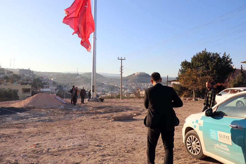 Silifke Belediye Başkanı Sadık Altunok, Toros Mahallesi İnce Mehmet Caddesi üzerinde belediyeye ait olan arsa üzerine yapılan özel asansörlü mekanizması bulunan Türk bayrağını belediye çalışanları ile birlikte dikti.