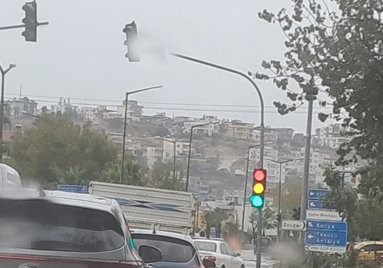 Evet Dörtyol kavşağındaki, Mersin’den gelen ve Konya-Antalya istikametine giden yol güzergahında bulunan trafik ışıkları iki gündür tek taraflı olarak üç ışığı birden yanıyor.