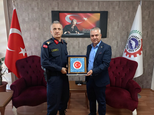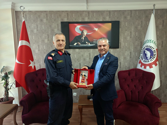 Mersin İl Jandarma Alay Komutanı Tuğgeneral Ercan Atasoy, Silifke Ticaret ve Sanayi Odasını ziyaret ederek, Başkan Nurettin Kaynar ile sohbet etti.