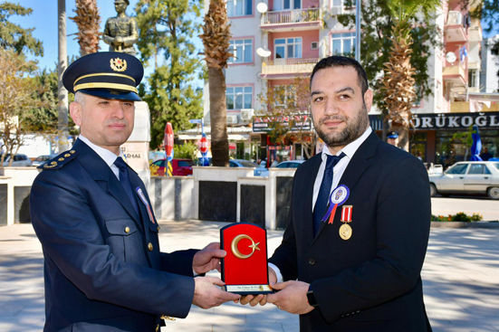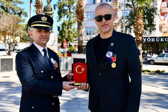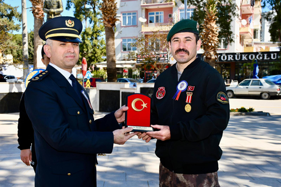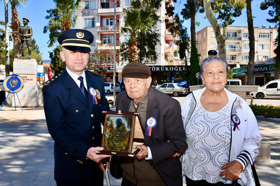 Tören kapsamında, Türk Polis Teşkilatı’nın 181. yılı dolayısıyla gazilere şilt takdimi yapılırken, Polis Teşkilatına uzun yıllar hizmet eden emekli polis memuru Celal Batura’ya meslek yılına saygı plaketi verildi.