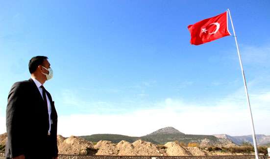 Silifke Belediye Başkanvekili Sadık Altunok, Gazi mahallesi su büklümü mevkiinde bulunan Sevgi Parkı içine kesilen kurban ve yapılan dualar eşliğinde Türk bayrağını işçilerle birlikte dikti.