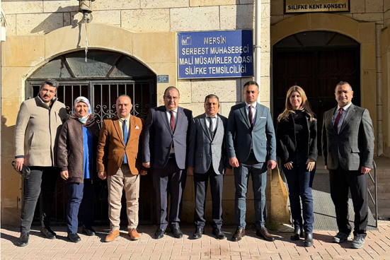 Silifke Vergi Dairesi Müdür Vekili Ali Serkan Uğurlu, Müdür Yardımcısı Erkan Eryılmaz ve bir grup vergi dairesi mensubu, Vergi Haftası nedeniyle Mersin SMMMO Silifke Temsilcisi Fatih Küçük ve Yönetim kurulunu ziyaret ederek, karşılıklı fikir alışverişinde bulundular.
