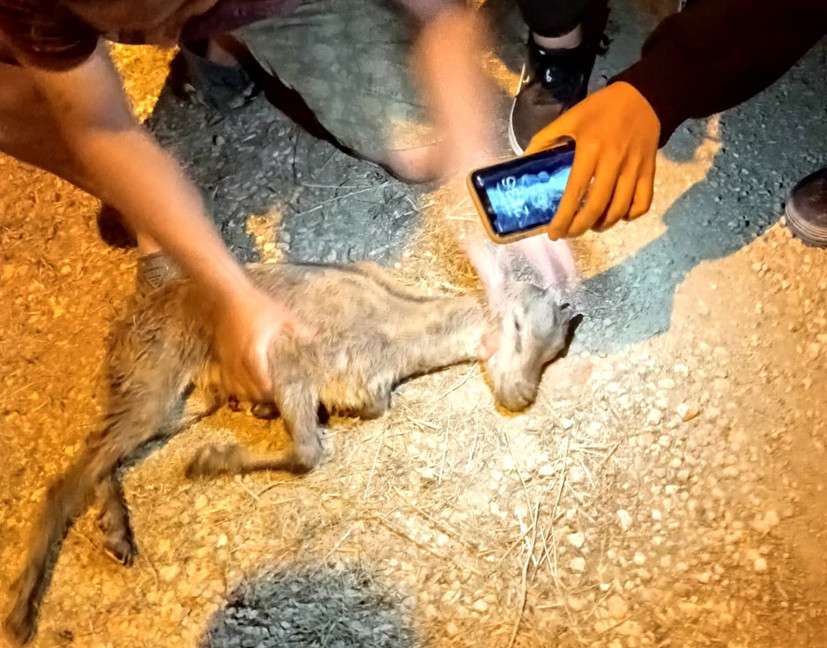 Akşam saatlerinde yürüyüşe çıkanlar tarafından fark edilen yavru keçinin durumu ve konumu muhtar aracılığıyla görevliye iletildi.