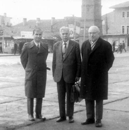 Foto sağdan: Osman Attilâ. Şair Orhan Şaik Gökyay ve İ.Ü.Nasrattınoğlu
