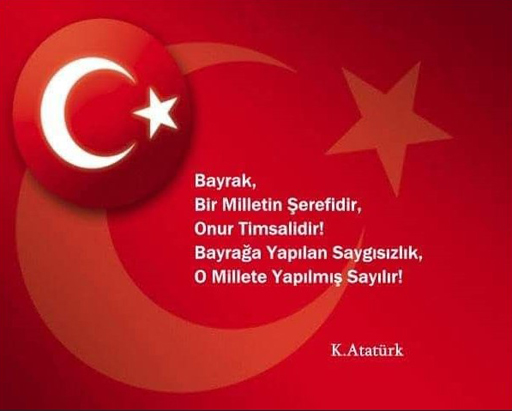 Türk bayrağımız, Türk halkının milli birliği, bağımsızlığı ve onuru için mücadelesini simgeleyen önemli bir semboldür. Türk bayrağındaki beyaz renk; barış, saflık ve özgürlüğü, kırmızı renk ise; Türk halkının kahramanlık, cesaret ve bağımsızlık mücadelesini temsil eder. Namusumuz ve şerefimizdir.