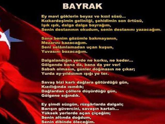 "BAYRAKLARI BAYRAK YAPAN ÜSTÜNDEKİ KANDIR EĞER UĞRUNDA ÖLEN VARSA VATANDIR."