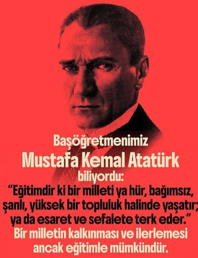 "Eğitimdir ki, bir milleti hür, bağımsız, şanlı, yüksek bir toplum halinde yaşatır veya bir milleti kölelik ve yoksulluğa terk eder."