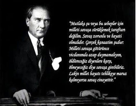 Atamızın düşüncelerini yazmadan olmazdı. Savaş zorunlu ve hayati olmalıdır. Lakin millet hayatı tehlikeye maruz kalmıyorsa savaş cinayettir".