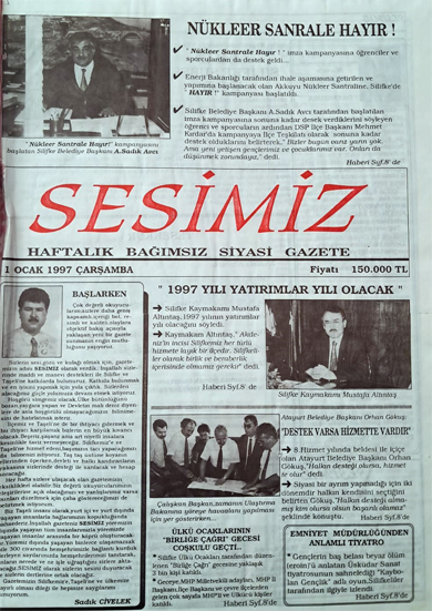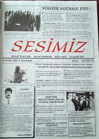 Her hafta Çarşamba günleri okuyucularımızla birlikte oluyor, onlara Silifke’nin gündemi ile ilgili haberleri aktarıyoruz, hem de gazetemizi Mersin’de ofset bastırarak. O dönemde Silifke’de ofset matbaa yok. Matbaalarda entertip baskı, kurşun harfler kullanılarak baskı yapılıyor ve biz Sesimiz olarak Silifke’de bir ilki gerçekleştiriyor ve ilk ofset baskılı gazeteyi Silifkeli okuyucularımızla buluşturuyoruz. Sanki dün gibi…